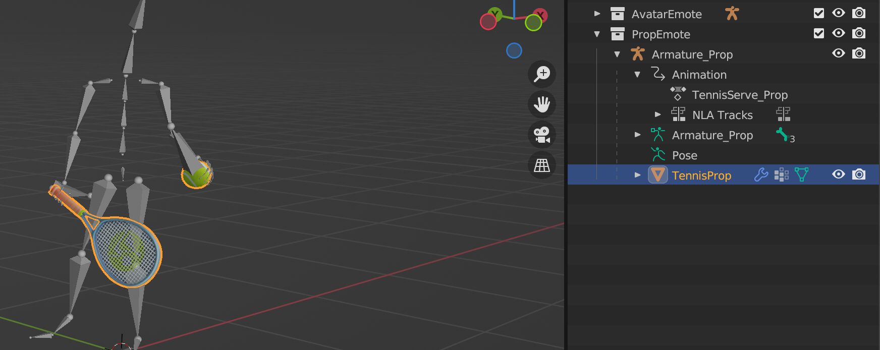 In order for all the animations to be exported, the clips should be added to the NLA Tracks. Make sure there’s only one animation clip for the avatar and another one for the prop, they must have the exact same number of frames.